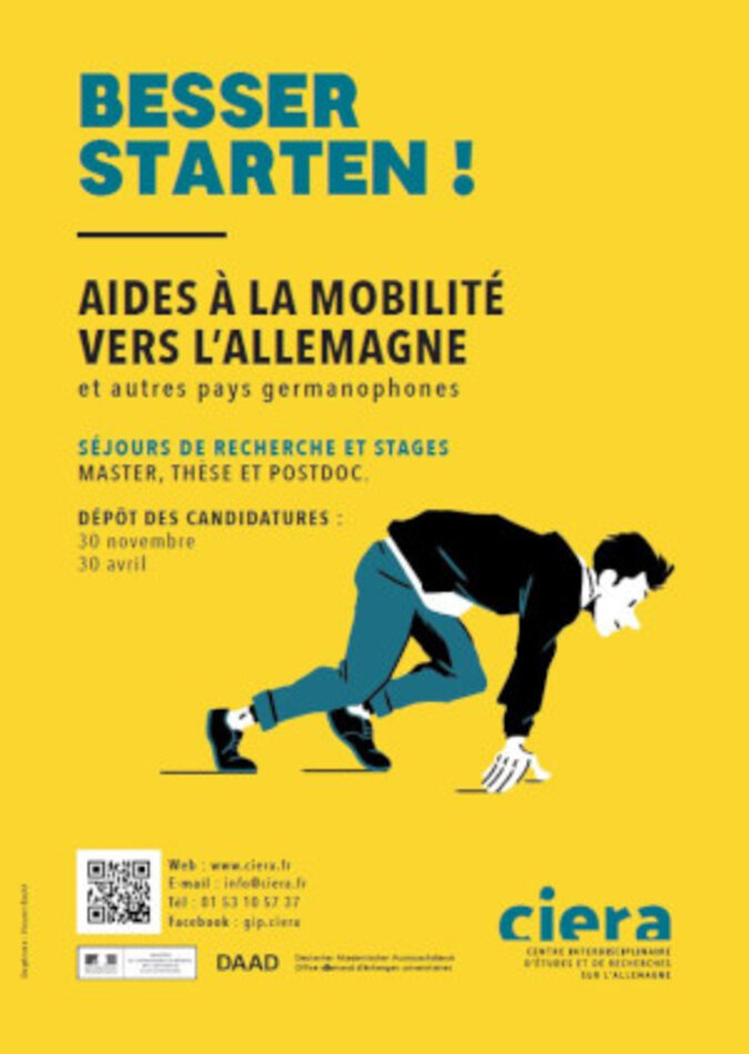 Le CIERA propose, avec le concours du DAAD et du MESRI, des aides à la mobilité pour effectuer un séjour de recherche (niveau master, thèse et post-doctorat) ou un stage (niveau master) dans le domaine des sciences humaines et sociales.