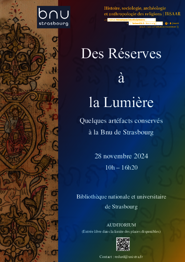 ITI HiSAAR Université d'hiver Axe 1 28 novembre 2024 Des Réserves à la Lumière Quelques artéfacts conservés à la Bnu de Strasbourg