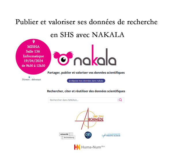 Dans cette matinée de formation, nous verrons comment s’initier à l’utilisation de l’entrepôt de données NAKALA de la TGIR* Huma-Num qui est destiné à d’héberger de manière pérenne les données de la recherche en SHS et dispose également d’un module pour exposer ses données. L’instance test de NAKALA…