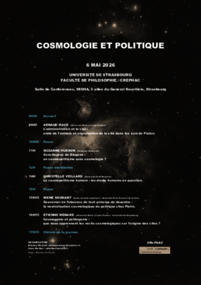 Journée d'études sur la cosmologie et la politique dans l'Antiquité, organisée par Étienne Ménard (etienne.menard@unistra.fr) et Anne Merker (amerker@unistra.fr).