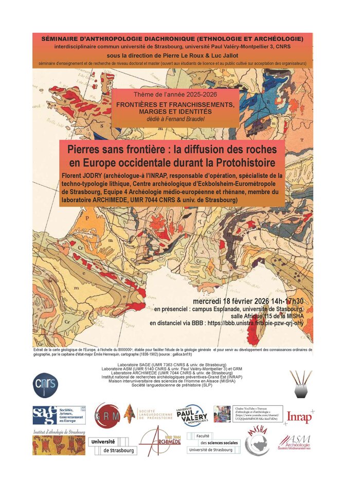 Séminaire d'anthropologie diachronique (ethnologie et archéologie), univ. de Strasbourg et univ. Paul Valéry-Montpellier 3, dirigé par Pierre Le Roux et Luc Jallot.