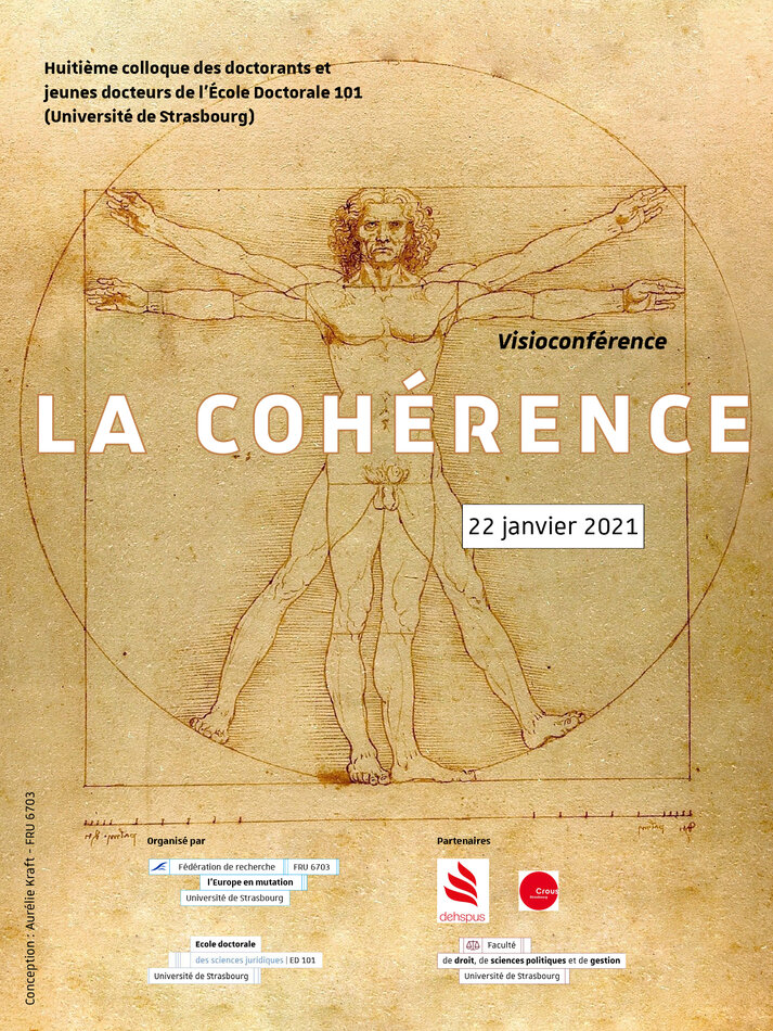 Dans le cadre du Huitième colloque des doctorants et jeunes docteurs de l’École Doctorale 101 de l'Université de Strasbourg, une visioconférence intitulée « la cohérence » aura lieu le vendredi 22 janvier à partir de 8h50 en ligne.